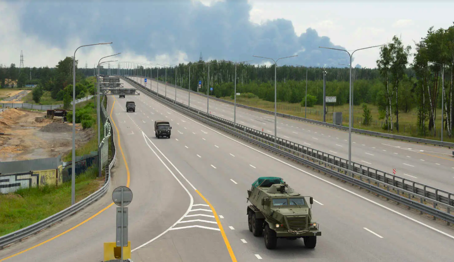 Los gobernadores de las regiones a lo largo de la importante autopista M-4 que une Rostov-on-Don con Moscú, aproximadamente a 600 millas al norte, habían dicho que los convoyes de equipos militares se estaban moviendo en la autopista y urgieron a los residentes locales a mantenerse alejados del corredor. Videos verificados por The Times también muestran señales de combates activos a lo largo de la autopista M-4 al sur de la ciudad de Voronezh, incluyendo helicópteros y un camión destruido a lo largo de la carretera, tras informes de que los combatientes de Wagner habían ingresado a la región de Voronezh.