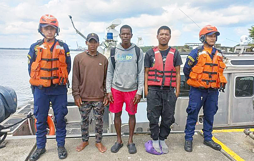 Las imágenes compartidas por la Armada colombiana muestran a los tres hombres junto a una embarcación, evidenciando la dureza de su travesía. Los rescatados fueron puestos a disposición de las autoridades migratorias colombianas.