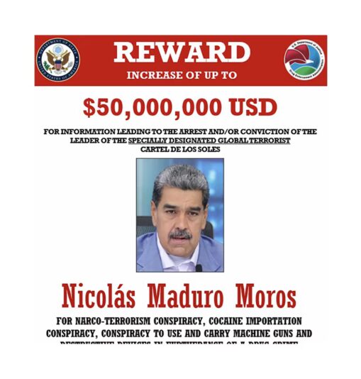 “No vamos a permitir que un cartel se haga pasar por gobierno dentro de nuestro hemisferio. Maduro es un fugitivo de la justicia estadounidense y hay una recompensa por su captura”.